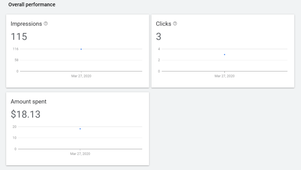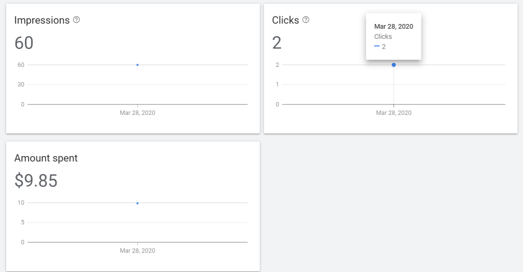 The picture above shows the results for running the PPC campaign that had a maximum $8 dollar daily limit and was again run for 3 days. This one was successful; however, using a $5 daily limit showed better results in gaining engagement in the advertisement. Using different limits allowed for us to analyze that our advertisement needed a $5 dollar daily limit to be the most successful.