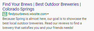 For the PPC Campaign we wanted to focus on what our company is trying to showcase through our website and social media. It showcases the fact that we are featuring local breweries and beers in the Colorado area but also that we are showing our commitment to help consumers find a place that they love and enjoy based on reviews from others that are showing their dedication to craft beer. The point of the PPC Campaign was to encourage consumers to click on the advertisement because our statements were helping them find what they need.